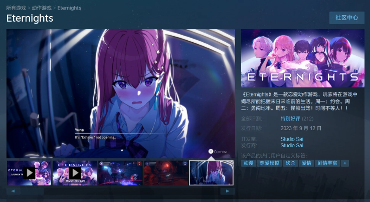 9 月 13 日消息,Studio Sai 出品的末日恋爱战斗游戏《永夜》今日正式登陆 PC、PS5 及 PS4 平台,在上届新品节推出 Demo 并大受欢迎后,游戏提前一周上线,在 Steam 和 Epic 游戏商城均有 10% 的折扣,IT之家查询 SteamDB 数据库得知,本作当前国区折扣后售价为 97.2 元,支持中文。