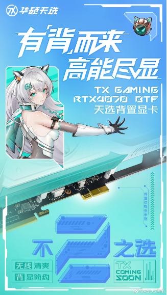 官方表示,华硕天选 TX GAMING RTX40 系显卡天选系列首次亮相 BW2023 盛会现场,显卡采用 “天选姬”的白色形象,正面和背面都印有魔幻青的条纹,灵动洁白。