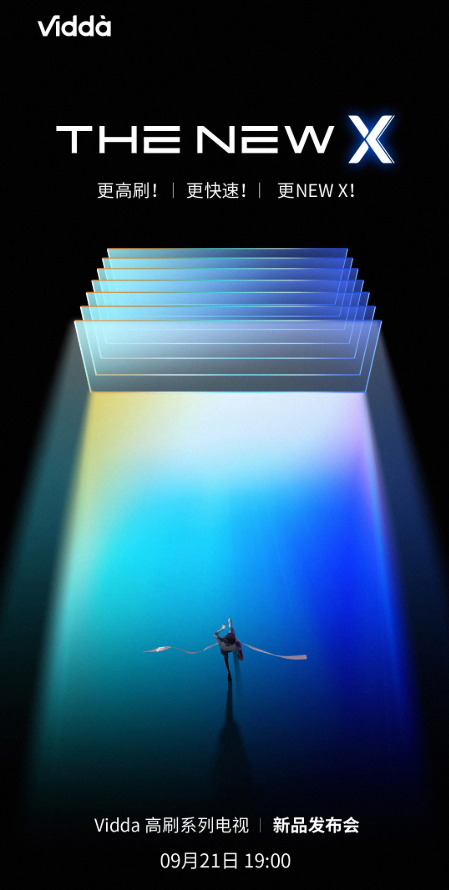 原标题:海信 Vidda 高刷旗舰电视 New X 系列 9 月 21 日发布