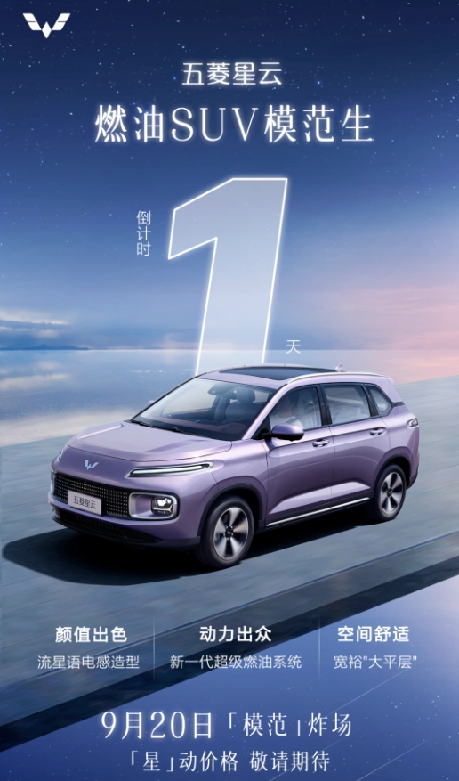 9 月 19 日消息,五菱星云 HEV 油电混动 SUV 宣布将于明日(9 月 20 日)正式上市,并公布上市价格。