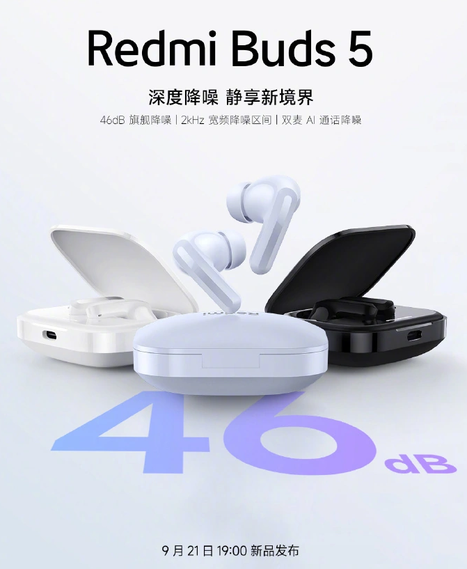 9 月 19 日消息,小米 Redmi Buds 5 主动降噪耳机宣布将于 9 月 21 日发布,与 Redmi Note 13 系列手机一同推出。