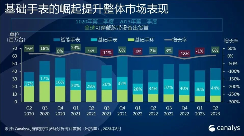 9 月 20 日消息,市场调查机构 Canalys 近日发布报告,表示 2023 年第 2 季度全球可穿戴腕带设备出货量达 4400 万台,同比增长了 6%。