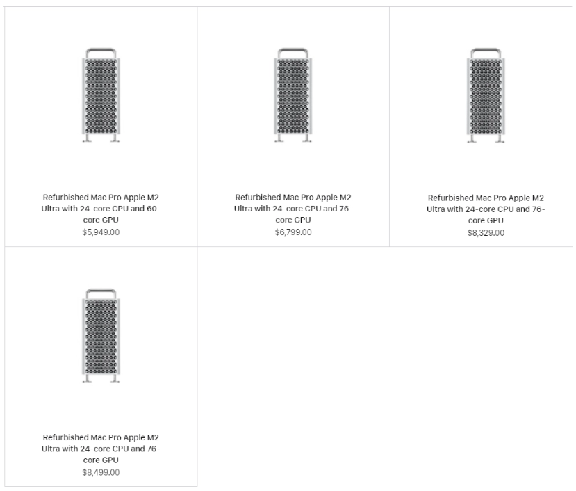 搭载“M2 Ultra”的基础版 Mac Pro 翻新机型为 5949 美元(IT之家备注:当前约 43368 元人民币),比全新机型(6999 美元)低了大约 1050 美元,折扣幅度约 16%。
