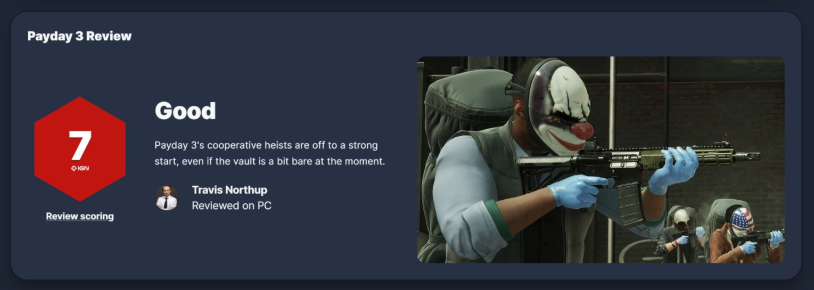 与其前作一样,Payday 3 是一款合作的多人第一人称射击游戏,游戏的质量有所提高,机制改进相当出色,新的抢劫案都很棒,不过数量有点少,仅五个小时后,所有抢劫案剧情就打完了。