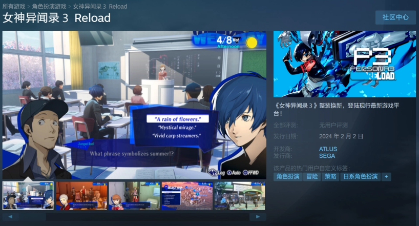 9 月 21 日消息,世嘉及 Atlus 日前公布了《女神异闻录 3:Reload》的最新中文预告视频,其中亮相了同样为“人格面具操控者”的敌方势力“史特雷加”,此外还展示了不少游戏新画面。
