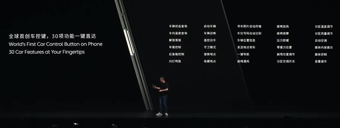 作为一款汽车企业造的手机,蔚来 NIOPhone 号称“全球首创车控键,30 项功能一键直达”,支持 NIOLink 手机 / 车机全景互联。