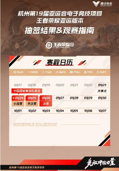 原标题:《王者荣耀》亚运版本今日正式开赛,9 月 24 日-26 日将诞生一枚金牌
