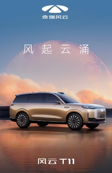 9 月 24 日消息,奇瑞汽车今日上午公布了全新新能源产品序列“风云”第二款车型风云 T11 的官图。据官方介绍,新车定位为大型混动 SUV。同时,奇瑞汽车宣布至 2024 年底将推出 6 款全新产品。
