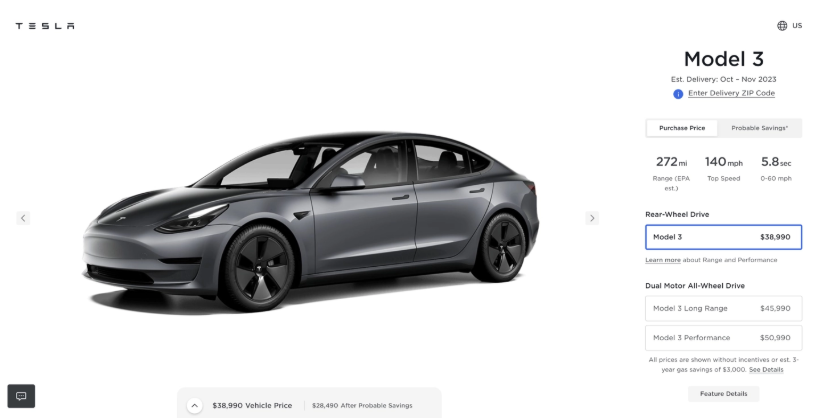 10 月 7 日消息,据特斯拉美国官网显示,该公司在美国继续降低部分车辆价格,将 Model 3 汽车在美国的价格从 40240 美元(IT之家备注:当前约 29.4 万元人民币)降至 38990 美元(当前约 28.5 万元人民币),将 Model Y 长续航版 SUV 在美国的价格从 50490 美元(当前约 36.9 万元人民币)降至 48490 美元(当前约 35.4 万元人民币)。