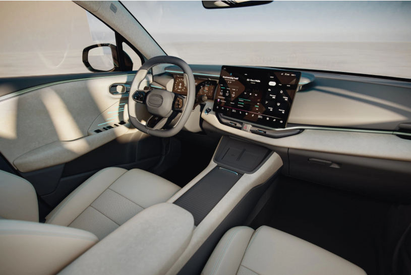 整体来看,整车内部采用了被官方称为“都市对立美学”的设计语言,中控台采用了多层次设计,从车门到中控区域配有浅绿色的氛围灯条。此外,在仪表台、扶手箱和门把手等位置采用了灰白双拼色的设计,大尺寸的悬浮式中控屏非常显眼。