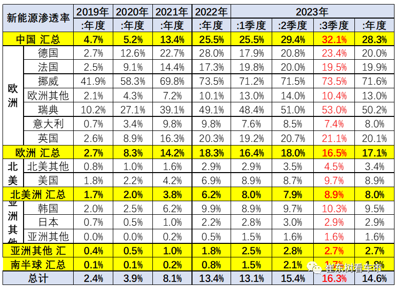 今年第三季度(截至 8 月)世界新能源车渗透率达到 16.3%,已经超过去年年度的 13.4%。