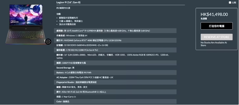 10 月 7 日消息,联想拯救者 Y9000K 2023 旗舰游戏本港版现已开启预定,i9-13980HX + RTX 4080 + 32G + 1T 型号售价 41498 港币(IT之家备注:当前约 38759 元人民币)。国行型号预计会在本月晚些时候上市。