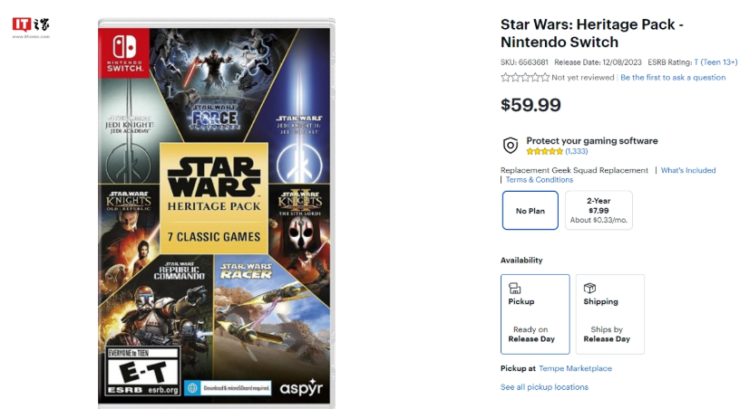 10 月 8 日消息,Aspyr 和 Lucasfilm Games 宣布将推出 Switch 版《星球大战》遗产包实体版,将于 12 月 8 日发售,现可在百思买预订,售价 59.99 美元(IT之家备注:当前约 439 元人民币)。