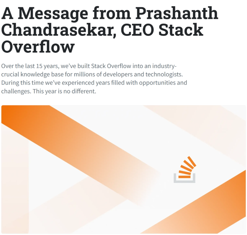 在过去的 15 年中,我们将 Stack Overflow 打造成数百万开发人员和技术专家的行业重要知识库。在此期间,我们经历了充满机遇和挑战的岁月。今年也不例外,从为成功推出 OverflowAI 所做的不懈努力,到应对宏观经济压力对整个技术行业造成的客户预算转移的持续威胁。