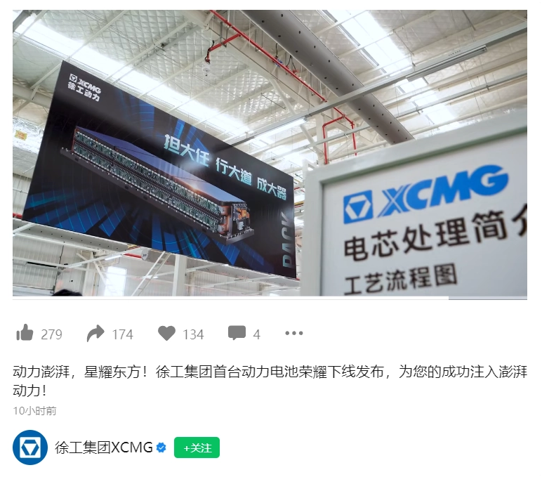 10 月 18 日消息,10 月 17 日,徐工集团首台动力电池在徐工新能源动力科技有限公司下线发布。