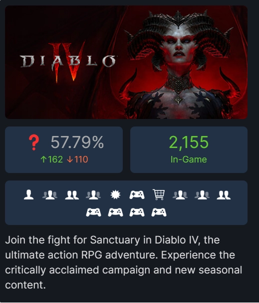 原标题:游戏《暗黑破坏神 4》正式上架 Steam,好评率 57.79% 获“褒贬不一”