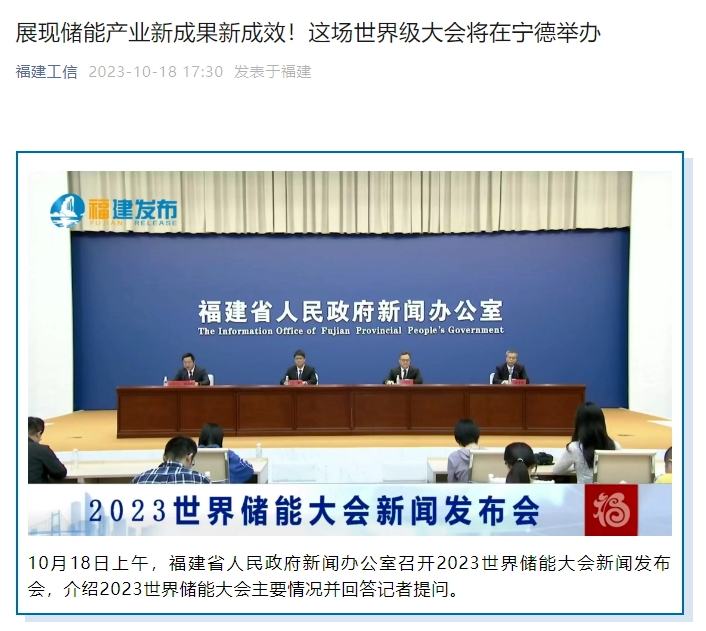 原标题:2023 世界储能大会将于 11 月 8 日至 10 日在福建宁德举办