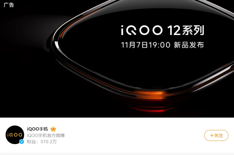 IT之家注意到,在微博搜索“iQOO”字样之后,可以看到 iQOO 12 的宣传广告,其中揭露新品发布会举行时间 ——11 月 7 日 19:00.预计将于近日正式官宣。