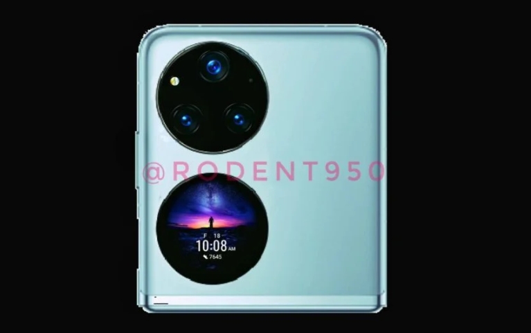 该图像表明该手机将有两个大圆圈,比 Pocket S 和 P50 Pocket 设备上的圆圈大。不过,整体设计预计将与华为目前的垂直可折叠手机相似。