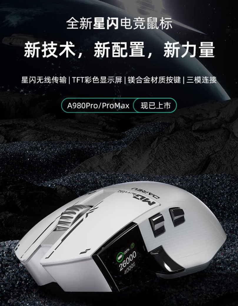 中国游戏外设制造商Dareu宣布在中国市场发布两款新的无线游戏鼠标A980Pro和A980ProMax。
