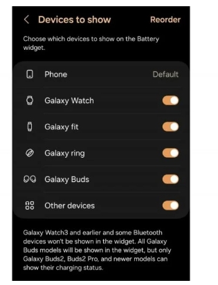 电池小部件可在三星智能手机上访问,现在将 Galaxy Ring 与 Galaxy Watch、Galaxy Fit 和 Galaxy Buds 等其他兼容设备一起列出。这一包含表明三星正在积极准备推出 Ring,并将其集成到其现有的可穿戴设备生态系统中。