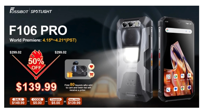 FOSSiBOT F106 Pro 是一款坚固耐用的智能手机,旨在承受最恶劣的环境,同时为您提供无与伦比的功能和性能。在全球速卖通的全球首发销售期间,这款坚固耐用的智能手机将以大幅折扣价出售。您也可以在此处的官方网站上查看详细信息。