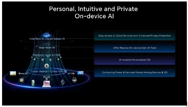 最后,在顶部,云 AI 服务接口层为用户提供了对海量云服务的轻松访问,同时优先考虑隐私保护,创造了真正全面和面向未来的 AI 体验。