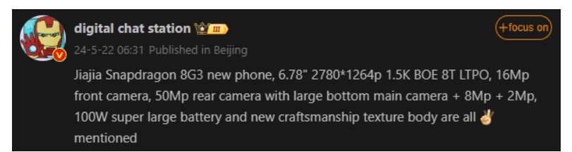 泄露的规格也与我们之前的报告一致。它的显示屏预计将来自京东方,并提供120Hz的刷新率。DCS此前也曾推出过骁龙8 Gen 3芯片组。该设备即将发布,因此请继续关注更多,因为我们将在有关此设备的其他信息可用时提供更新。