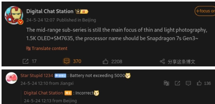 Digital Chat Station 建议该系列中的一款手机将配备高分辨率 1.5K AMOLED 显示屏,刷新率高。它将由高通 SM7635 芯片提供动力,该芯片在商业上称为 Snapdragon 7s Gen 3。