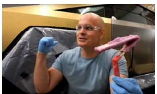 在整个清洁过程中,使用连接到阳极的刷子涂抹必要的化学品,同时将阴极磁性连接到正在处理的车身面板上。在钢材被剥离和酸蚀后,该团队使用阳极将含有 99.7% 纯度 24 空手道金的紫色粘液涂在 Cybertruck 上,在 Cybertruck 的车身表面沉积了一层微观薄的金层。